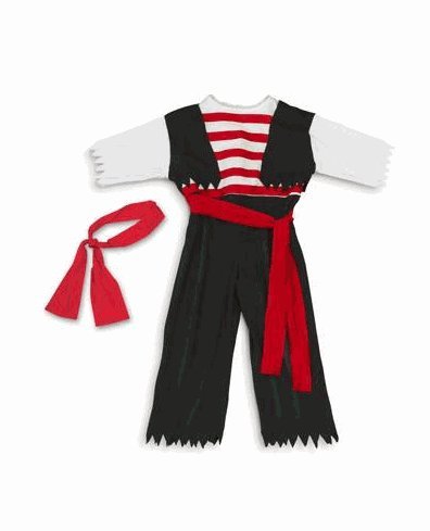 - 1 piece pirate costume comes equipped with built in vest, waist sash and separate head sash